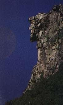 The Old Man Of The Mountain, a rock formation near Franconia, New Hampshire that was a popular symbol of the state. It collapsed in 2003 after having spent years being propped up with cables and other artificial support.